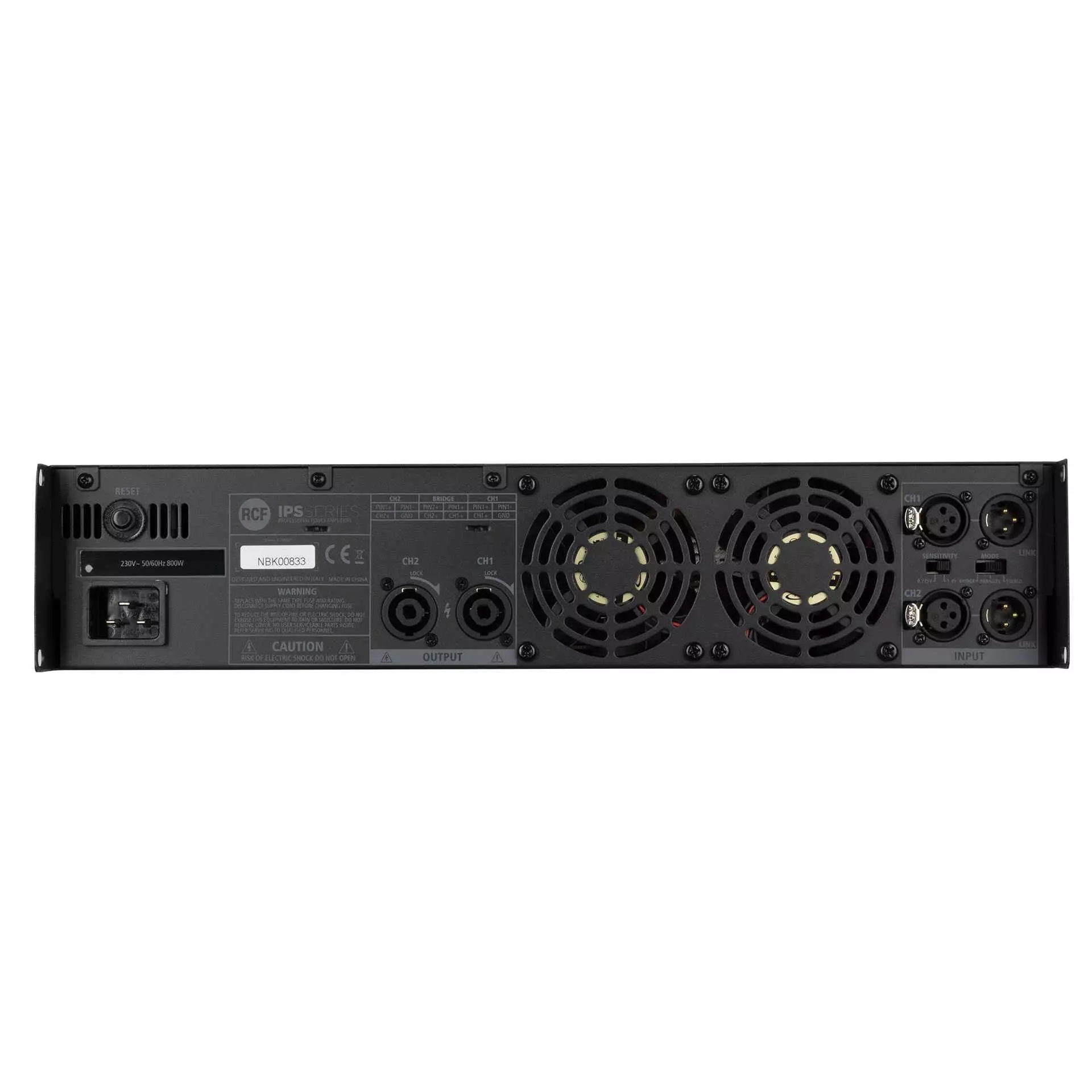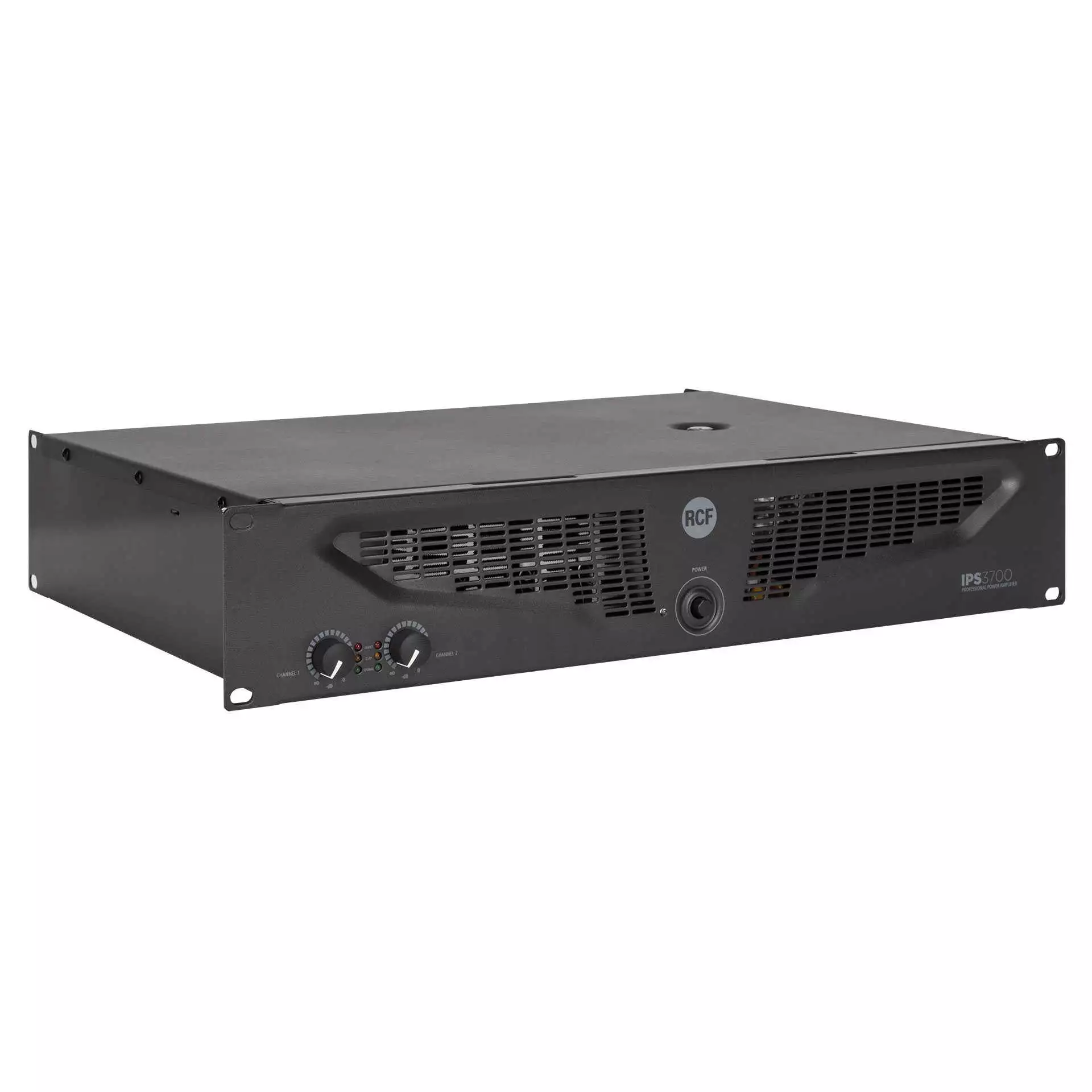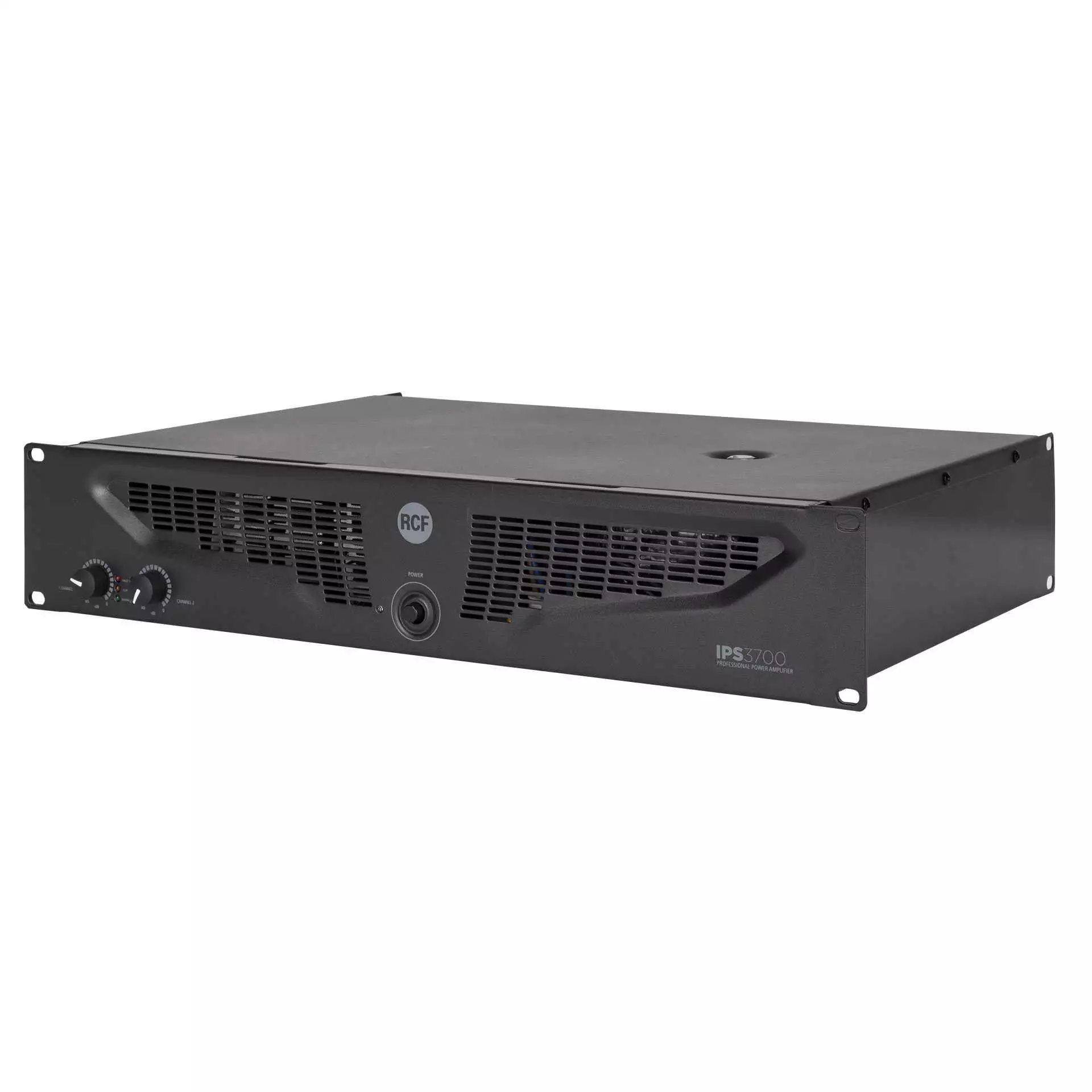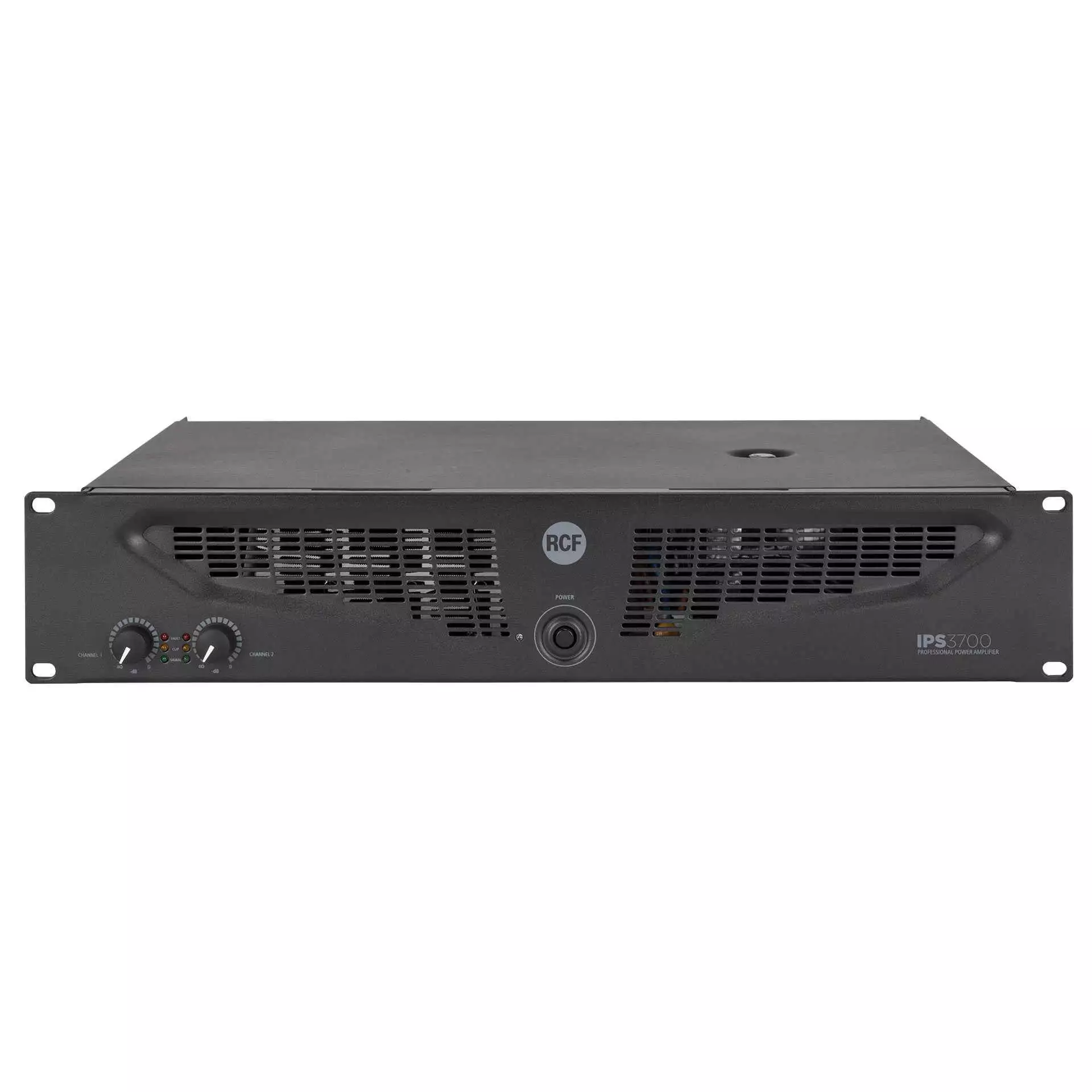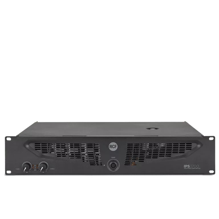 IPS 3700 is een 2-kanaals vermogensversterker die maximaal 2 x 1500 W RMS @ 4 O (3000 W RMS overbrugd @ 8 O) levert, weegt slechts 19,5 kg. Het beschikt over onafhankelijke versterkingsregelaars, signaalclips en fout-LED’s, stereo XLR-ingang en uitgangsverbinding, 1,4 V tot 0,775 V-ingangsgevoeligheidsschakelaar, mono-stereo – brugschakelaar, powercon-uitgangen.