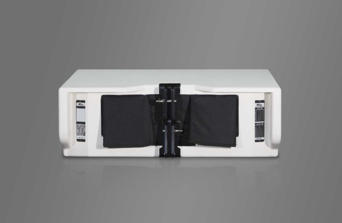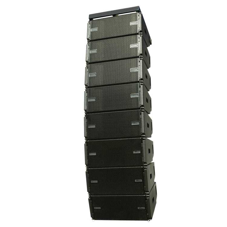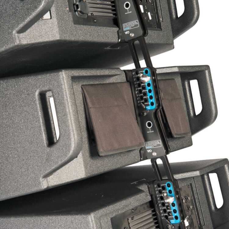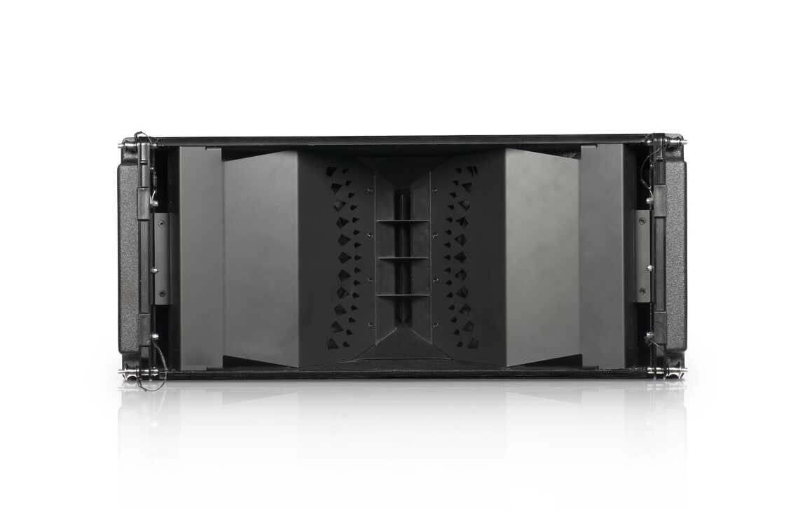 De eersteklas low-freq transducers van VIO L210, gepositioneerd in een V-vorm en verzegeld in een bass-reflex houten behuizing, zijn op maat ontworpen om de efficiëntie te verbeteren en om mee te gaan onder hoge stressomstandigheden, voor een accurate tijdelijke respons en een uitgebreide low-end reproductie. Eén enkele 3 “spreekspoel compressie driver (1.4” exit keel) levert nauwkeurig hoge frequenties. Een gloednieuwe golfgeleider draagt bij aan het creëren van een cilindrisch golffront, waardoor een zeer precieze hoogfrequente richtingsgevoeligheidsregeling mogelijk is, wat in het voordeel is van de werpafstand van het systeem. De akoestische omhulling wordt voltooid door twee massieve aluminiumfasepluggen die zich vóór beide woofers bevinden, die inwerkt als een vervolging van de hoogfrequente golfgeleider met constante gerichtheid. Elke faseplug heeft 26 ruitvormige gaten om de interferentie in de scheidingszone te verminderen en tegelijkertijd de frequentie en de respons op transiënten te verbeteren.GEAVANCEERDE DSP GEKOPPELDE ZELFSTANDIGE EFFICIËNTIE De module heeft een zeer efficiënte klasse D Digipro G3 900 W RMS-versterker die perfect 135 dB SPL kan halen. Een perfecte samenhang wordt zelfs op lange afstand gegarandeerd dankzij geavanceerde geluidsverwerking met FIR-filters. De voorversterkermodule is ook uitgerust met een digitale optische isolatie waarmee audiokoppeling wordt vermeden, waardoor eventuele ruis wordt voorkomen die wordt veroorzaakt door potentiële verschillen.SMART HARDWARE RIJDEN & ACCESSOIRES VOOR SNELHEIDSOPENINGEN De VIO L210 wordt geleverd met een ingebouwd 3-punts tuigsysteem voor een vlotte en snelle installatie van het systeem. De 2 front-links verbinden de modules eenvoudig vanuit elke hoek. De achterste centrale rigging-streng is uitgerust met een haaktype koppeling om de relatieve spleethoeken in te stellen die worden bepaald via de voorspellingssoftware dBTechnologies Composer. Tijdens het optillen van de array blokkeert de rigging-streng automatisch de systemen onder de vooraf ingestelde hoeken.